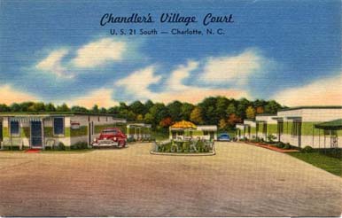 Chandler's Village Court on U.S. 21 South in Charlotte, North Carolina boasted steam heat, tile baths, Beauty Rest Mattresses, Grade `A` Grill and Real Southern Hospitality. Physical Description: 3x5 Publisher: S H Kress