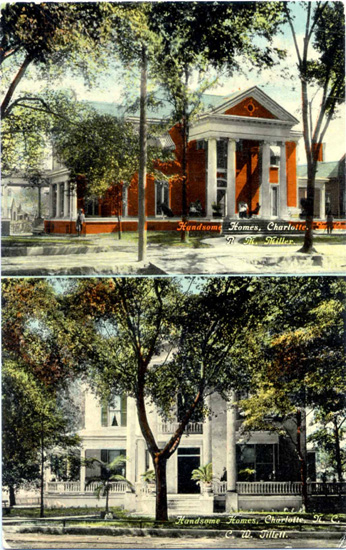 Handsome Homes, Charlotte, North Carolina, R. M. Miller and C. W. Tillett. Robert M. Miller was the president of the Elizabeth Mills and Millerton Homes Company and the Secretary-Treasurer of the Buford Hotel. His home was located at 406 North Tryon Street. Charles W. Tillett's home was located at 801 North Tryon Street. He was a prominent businessman in Charlotte. Physical Description: 3x5 Publisher: S H Kress