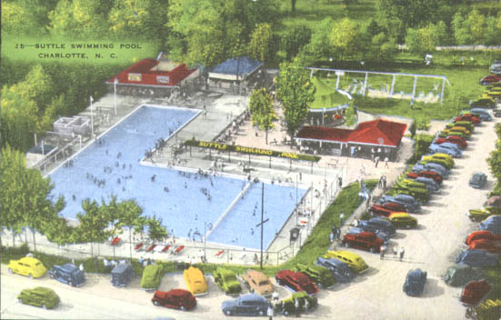 The Suttle Swimming Pool was located on Wilkinson Boulevard. It was a popular area for swimming, having a picnic or archery. The grounds also featured a merry-go-round and a swinging chairs. Physical Description: 3x5 Publisher: E. C. Kropp Company