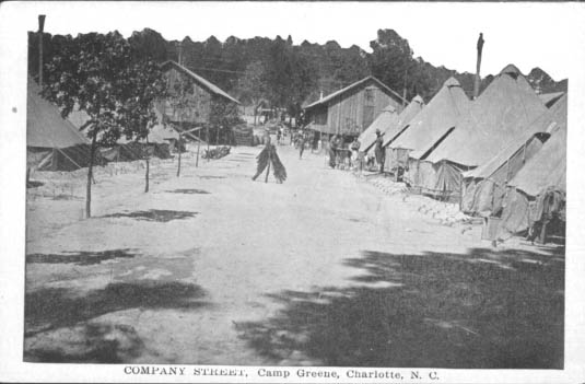 Company Street in Camp Greene, a World War I military training base in Charlotte, North Carolina Physical Description: 3x5 Publisher: A. M. Simon