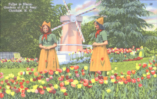 Joseph Benjamin Ivey (d. 1958) opened his tulip garden to the public each April. The garden contained over 35,000 tulips of different varieties. Physical Description: 3x5 Publisher: Genuine Curteich