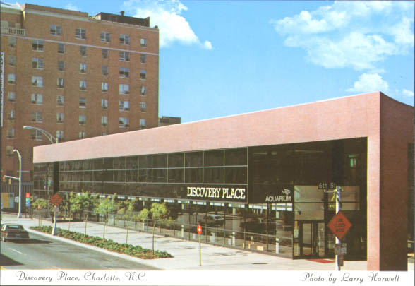 Discovery Place is located on North Tryon Street. This museum enables young and old alike to explore science and technology through interactive means. Physical Description: 3x5 Publisher: Aerial Photography Services, Inc.