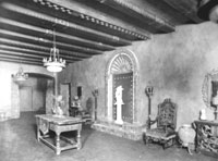 The lounge of the Carolina Theatre featured Mediterranean furniture, wall hangings and other accessories.The Carolina Theatre opened in 1927 on the corner of North Tryon and Sixth Streets. With a seating capacity of 1,800 and beautiful architectural and decorative features, it remained popular entertainment venue for many years. Today part of the theatre still stands and efforts are underway to restore the structure to its initial glory.