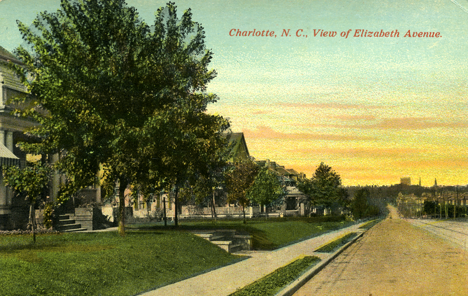 Driving down East Trade Street, the name changes to Elizabeth Avenue once crossing Kings Drive. Once lined lined with lovely houses, the area has changed since the late 1920s.