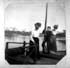 Two Elizabeth College students and a young man appear to be disembarking a small boat. Physical Description: Original in scrapbook Publisher: