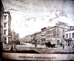 Souvenir drawing of Independence Square, intersection of Trade and Tryon Street for the Centennial Celebration of the Mecklenburg Declaration of Independence. Physical Description: Original etching Publisher: