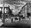 Etching of Indpendence Square, the intersection of Trade and Tryon Streets in 1909, from the Mecklenburg Declaration of Independence Souvenir Edition. The original is in the Carolina Room.