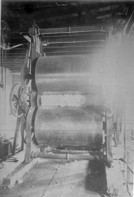 Roller compress creating bales of cotton. Physical Description: Original from Tompkins Papers Collection.4x5 negative Publisher: Unknown