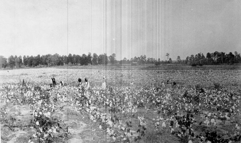 Workers picking cotton in the fields. Physical Description: 4x5 negative Publisher: Unknown