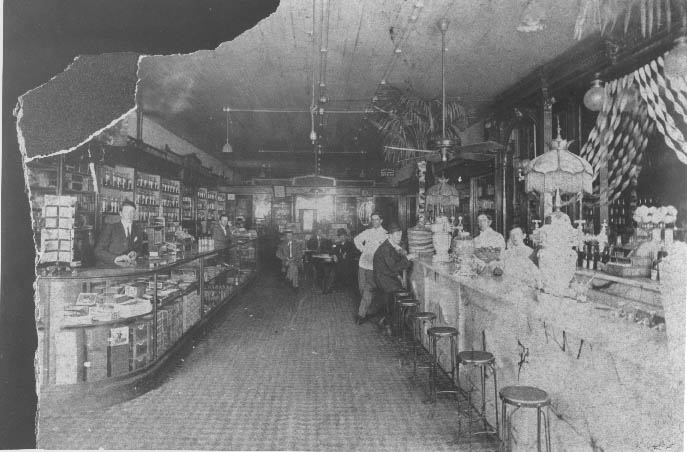 An interior shot of the North Tryon Drug Company that was located on the northeast corner of Tryon and Fifth Streets. Physical Description: 8x10 torn and grainy Publisher: Unknown