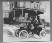 Two women driving an early automobile. Physical Description: 8x104x5 negative Publisher: Unknown