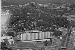 Aerial view of Memorial Hospital, now Carolinas Medical Center. Physical Description: 8x10 Publisher: Aerial Photography Services, Inc.