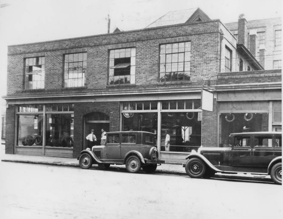Victor Shaws' Tire Store was located on the southeast corner of North College and Sixth Streets. Physical Description: 8x10 glossy, 4x5 negatives - 2 copies Publisher: Unknown