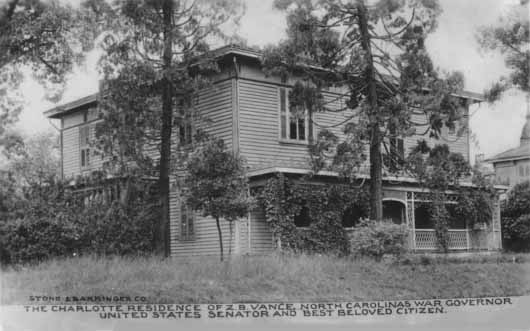 The Charlotte residence of Zebulon B. Vance (1830-1894), served as twice as Governor of North Carolina (1862-1865) and (1877-1879) and later as United States Senator from North Carolina (1879-1894). After his first term as Governor, Vance, a native of Buncombe County, settled in Charlotte and practiced law.